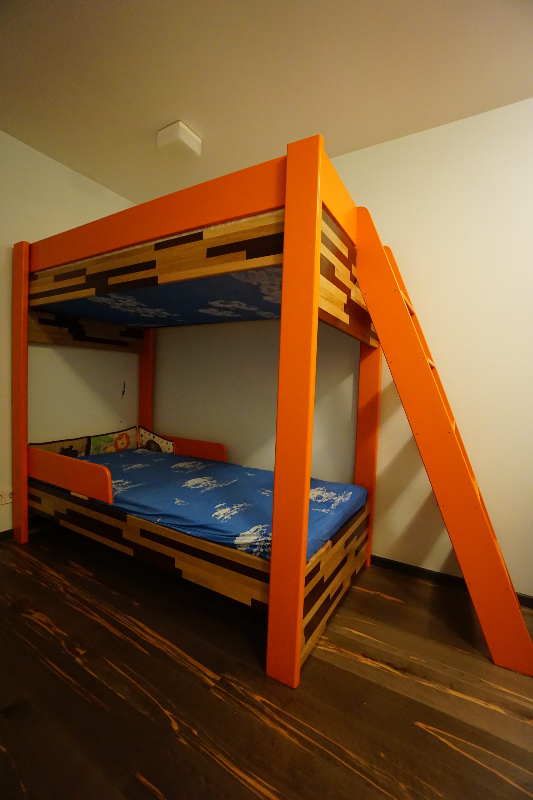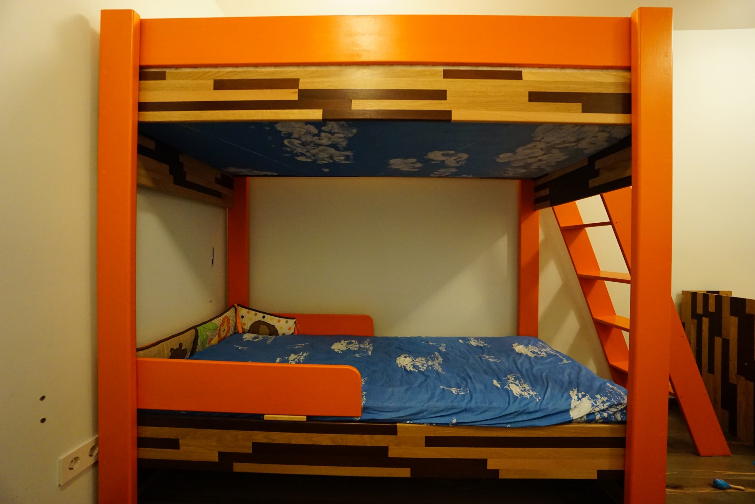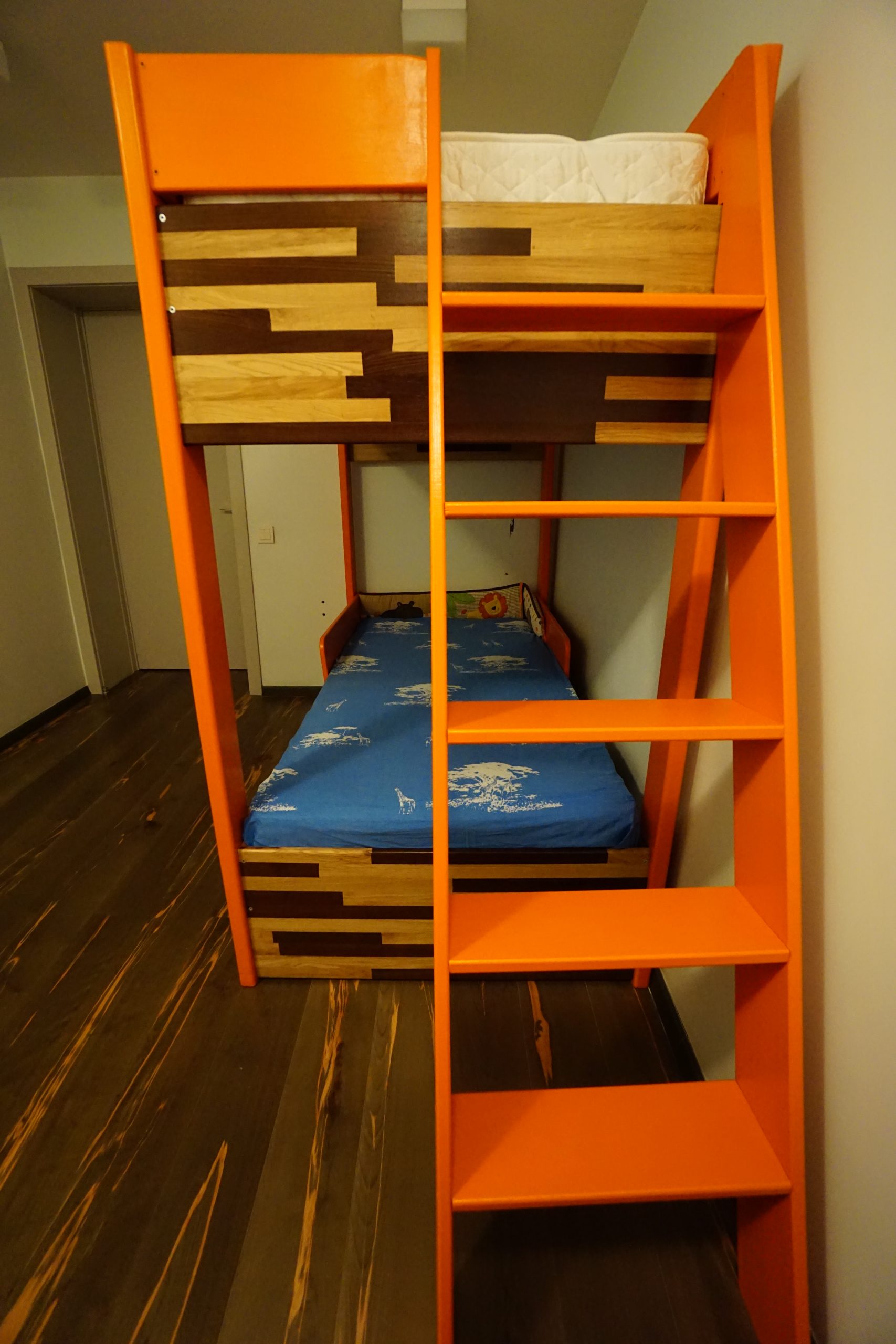 Кровать двух ярусная детская, изготовлена из срощенных щитов из ясеня и термоясеня.